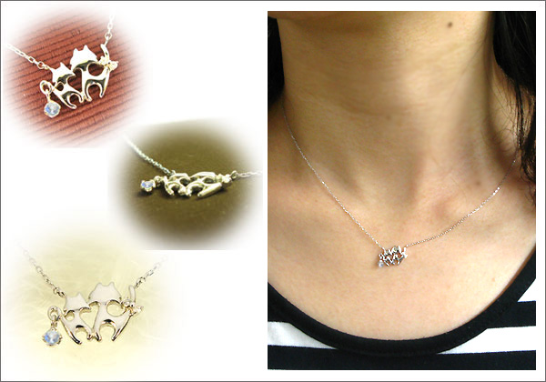 6月誕生石ロイヤルブルームーンストーンを一粒使用した猫(ネコ)モチーフの18金製ネックレスペンダントです。