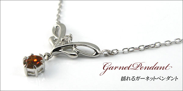 月誕生石ガーネットを使用した羽モチーフの18金製ペンダントネックレスです。