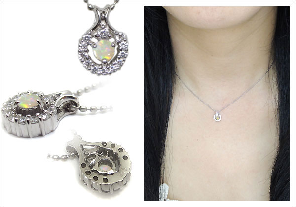 10月誕生石オパールを一粒使用した18金製馬蹄(ホースシュー)デザインネックレスペンダントです。