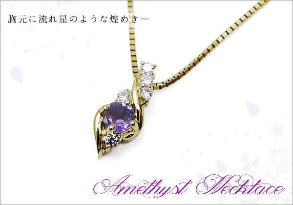 ![]() 2月誕生石アメジストを一粒使用した18金製のネックレスペンダントです。 ご自分へのご褒美や記念日、誕生日プレゼントなどの贈り物にもお勧めです。