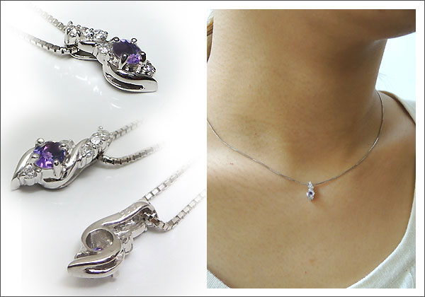 2月誕生石アメジストを一粒使用したプラチナ製のネックレスペンダントです。