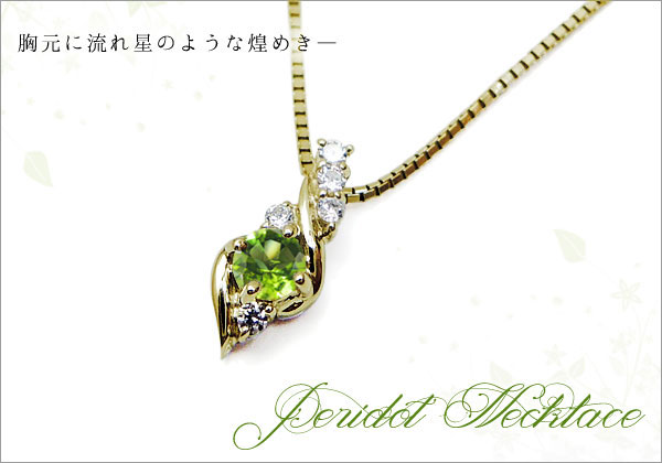 ![]() 8月誕生石ペリドットを一粒使用した18金製のネックレスペンダントです。 ご自分へのご褒美や記念日、誕生日プレゼントなどの贈り物にもお勧めです。
