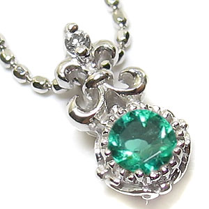 5月誕生石エメラルドを一粒使用した百合の紋章デザインのプラチナ製ネックレスペンダントです。