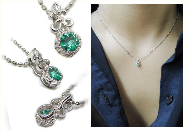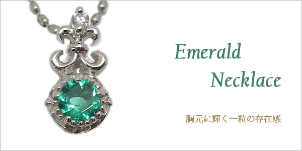 エメラルド・ネックレス・一粒・プラチナ・ペンダント