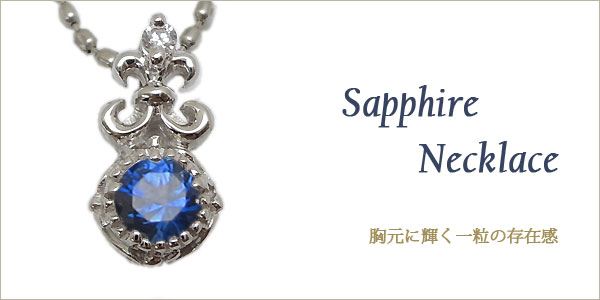 9月誕生石サファイアを一粒使用した百合の紋章デザインのプラチナ製ネックレスペンダントです。
