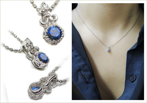 サファイア・ネックレス・一粒・プラチナ・ペンダント