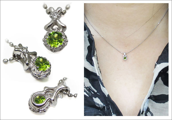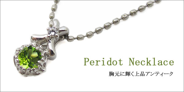 8月誕生石ペリドットを一粒使用したアンティークデザインの10金製ネックレスペンダントです。