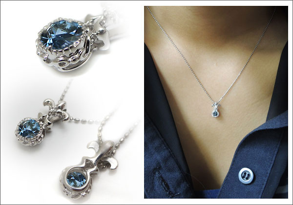 3月誕生石アクアマリンを一粒使用した18金製ネックレスペンダントです。