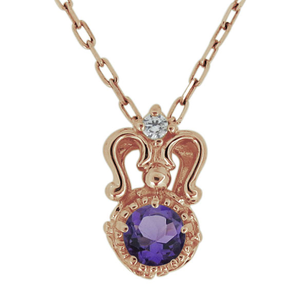 ネックレス レディース 18金 天然石 アメジスト アンティークペンダント 20代 30代 40代