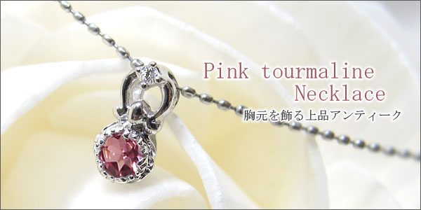 10月誕生石ピンクトルマリンを一粒使用したアンティークデザインプラチナ製ネックレスペンダントです。