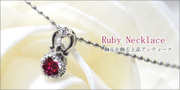 7月誕生石ルビーを一粒使用したアンティークデザイン18金製ネックレスペンダントです。