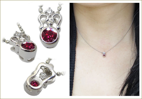 7月誕生石ルビーを一粒使用したシンプルデザインのプラチナ製ネックレスペンダントです。