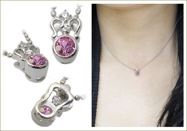 ピンクサファイヤ・ネックレス・一粒・プラチナ・ペンダント