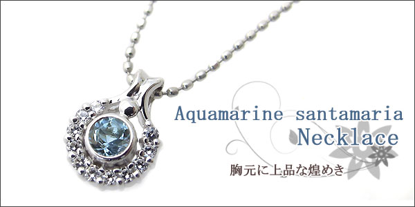 3月誕生石アクアマリンサンタマリアを一粒使用した10金製の馬蹄(ホースシュー)デザインネックレスペンダントです。