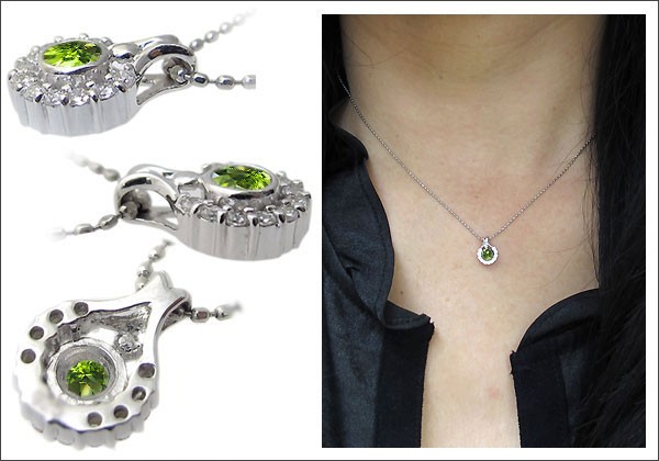 プラチナ・ペンダント・ペリドット・馬蹄・ペリドット・ネックレス