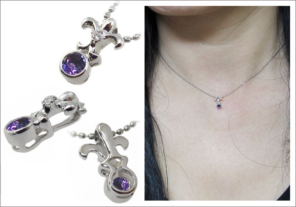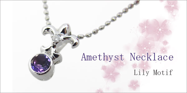 2月誕生石アメジストを一粒使用した百合の紋章デザインのプラチナ製ネックレスペンダントです。