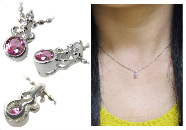 10月誕生石ピンクトルマリンを一粒使用したシンプルデザインのプラチナ製ネックレスペンダントです。