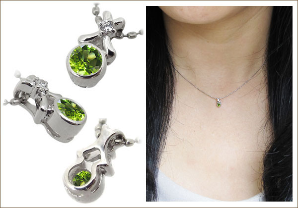 8月誕生石ペリドットを一粒使用したシンプルデザインのプラチナ製ネックレスペンダントです。