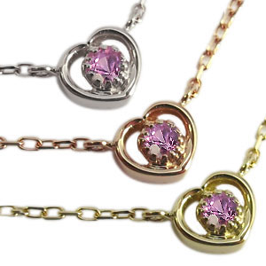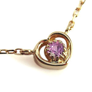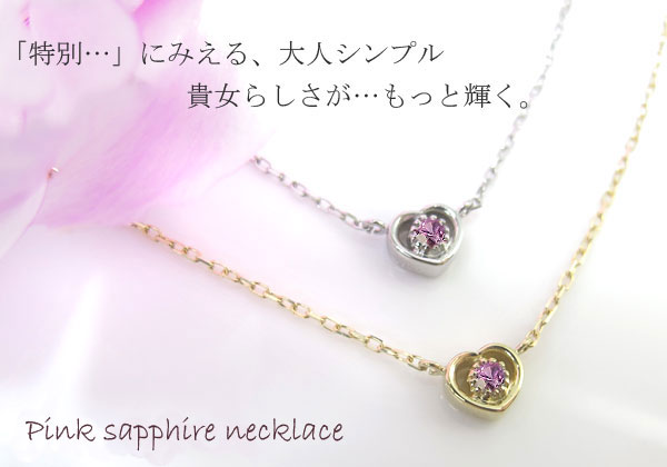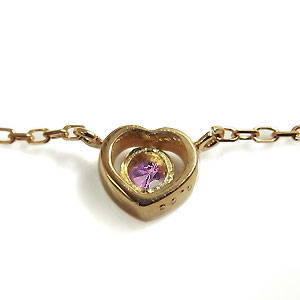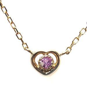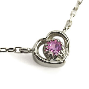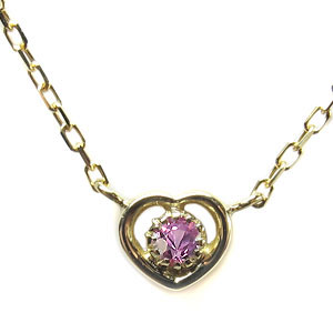 9月誕生石ピンクサファイヤを一粒使用したハートモチーフ18金製ネックレスペンダントです。