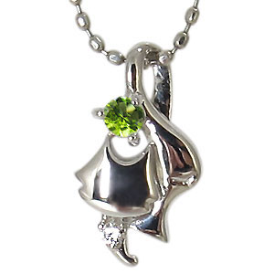 8月誕生石ペリドットを一粒使用したプラチナ製猫(ネコ)モチーフネックレスペンダントです。