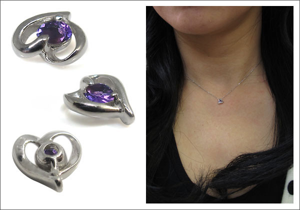 2月誕生石アメジストを一粒使用したハートモチーフ10金製ネックレスペンダントです。