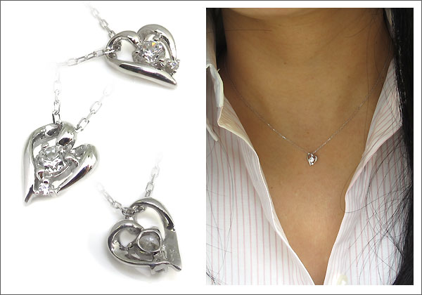 プラチナ・ネックレス・ハート・一粒・ダイヤモンド・ネックレス