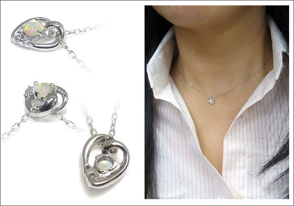 | ハート・ネックレス・K18・一粒・オパール・ネックレス | ||||||||||||||