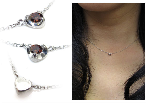 ハートネックレス・一粒・18金・ガーネット・ネックレス