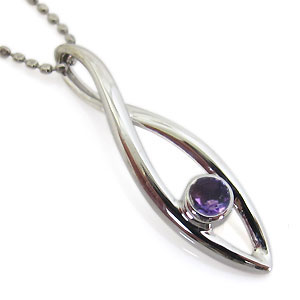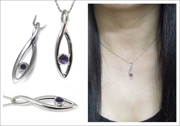2月誕生石アメジストを一粒使用したシンプルデザインのプラチナ製ネックレスペンダントです。