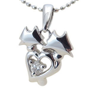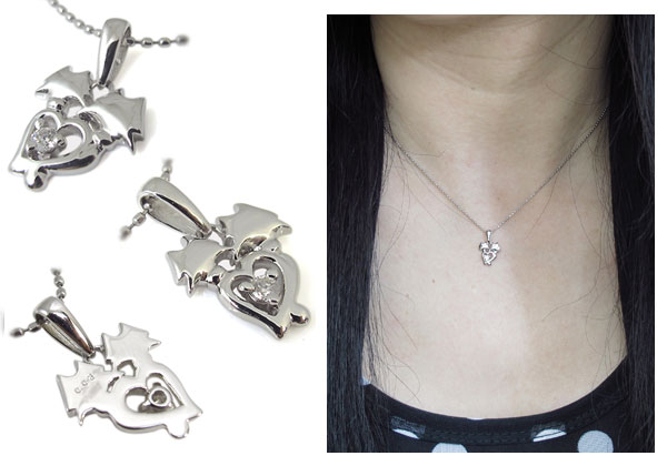 4月誕生石ダイヤモンドを一粒使用した10金製猫(ネコ)&ハートモチーフのネックレスペンダントです。