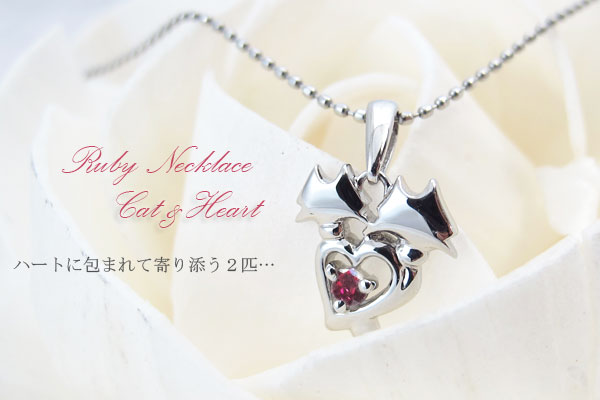 ネコ ハート ルビー ネックレス 18金 ペンダント
