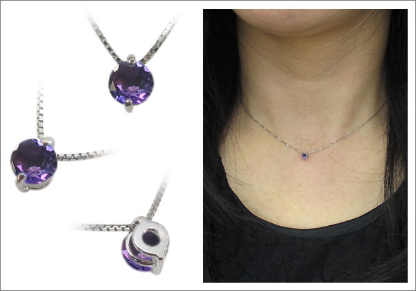2月誕生石アメジストを一粒使用したシンプルデザインの10金製ネックレスペンダントです。