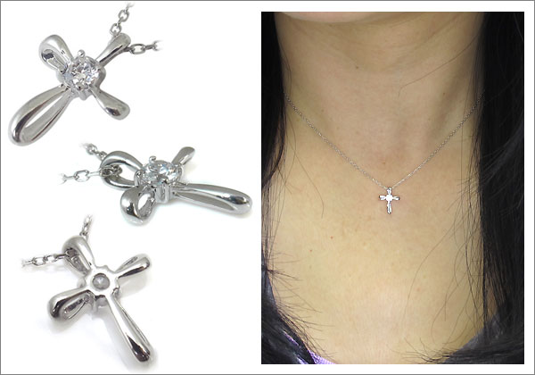 ダイヤモンド・一粒・10金・クロス・ネックレス
