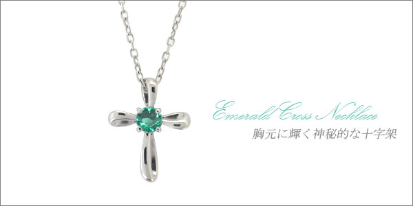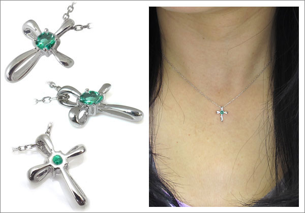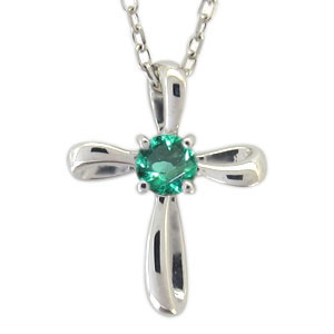 5月の誕生石エメラルドを一粒使用したクロスモチーフのプラチナ製ネックレスペンダントです。