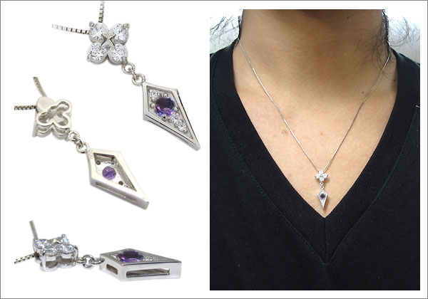 2月誕生石アメジストを使用した18金製メンズネックレスペンダントです。
