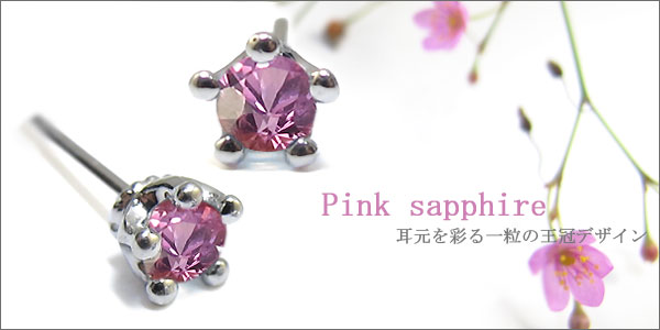 プラチナ・ピンクサファイヤ・シンプル・王冠・メンズ・一粒・ピアス