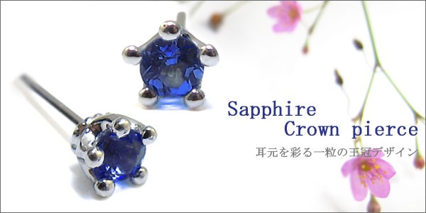 10金・サファイヤ ・シンプル・王冠・一粒・ピアス