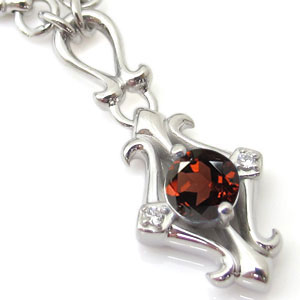 1月誕生石ガーネットを一粒使用したプラチナ製の百合の紋章デザインネックレスペンダントです。