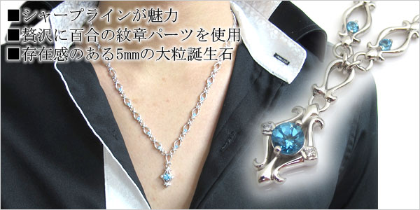 メンズ・ネックレス・百合の紋章・一粒・11月誕生石・ブルートパーズ・ペンダント・10金