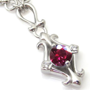 メンズ・ネックレス・百合の紋章・一粒・7月誕生石・ルビー・ペンダント・10金