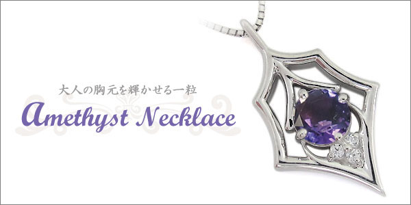 一粒・アメジスト・ペンダント・メンズ・ネックレス・18金