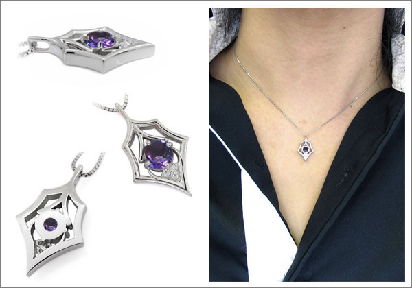 2月誕生石アメジストを一粒使用した18金製メンズネックレスペンダントです。