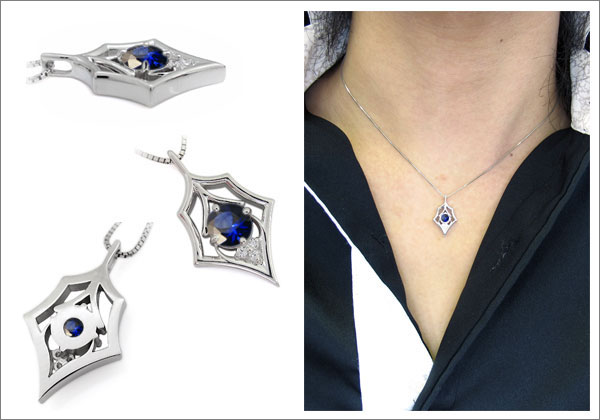 9月誕生石サファイアを一粒使用した18金製メンズネックレスペンダントです。