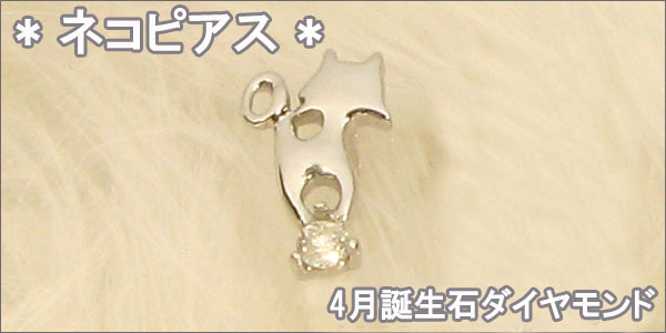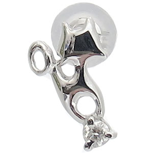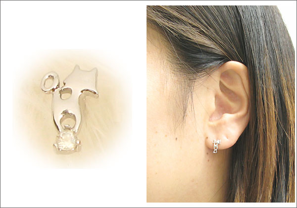プラチナ:ピアス:ダイアモンド:一粒:ネコ:pt900:片耳