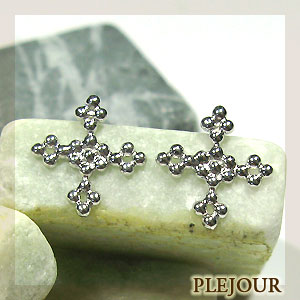 クロスデザインのプラチナピアスです、