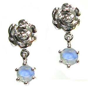 6月誕生石ロイヤルブルームーンストーンのバラモチーフピアスです。