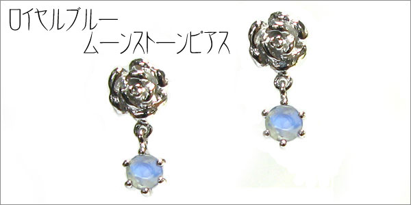 ロイヤルブルームーンストーン・バラ・一粒・ピアス