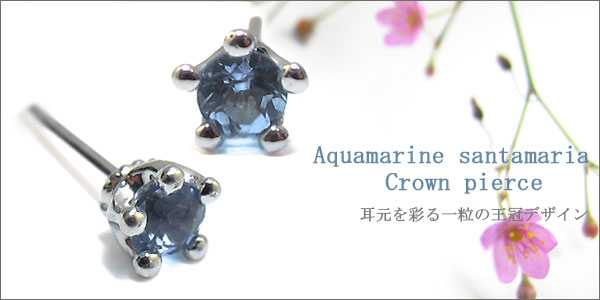 3月誕生石サンタマリアを使用したシンプルピアスです。