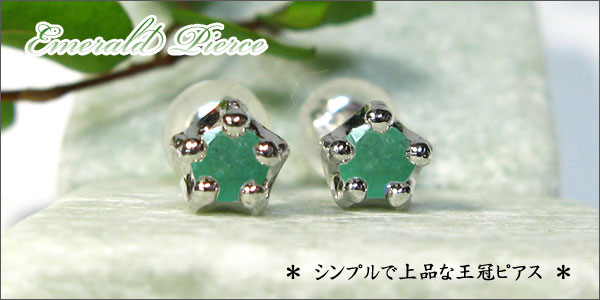 エメラルド・シンプル・王冠・メンズ・プラチナ・一粒・ピアス