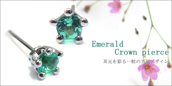 エメラルド・シンプル・王冠・メンズ・一粒・プラチナ・ピアス